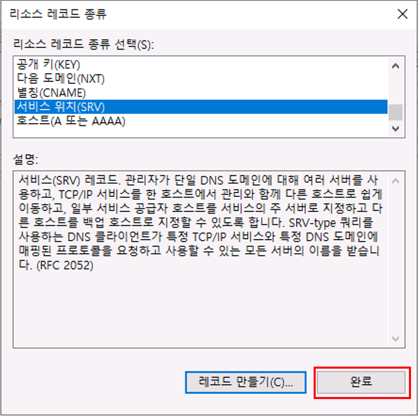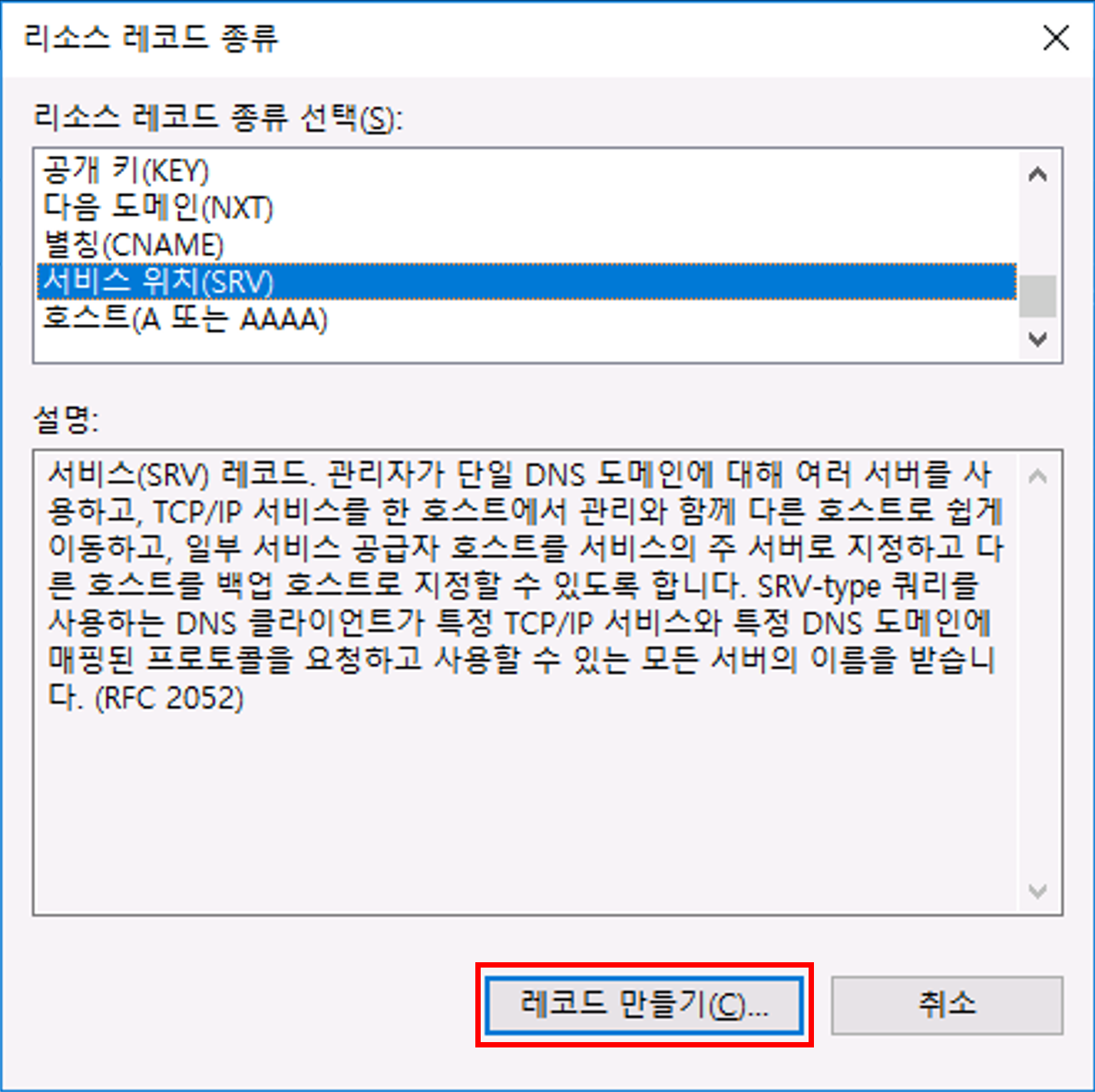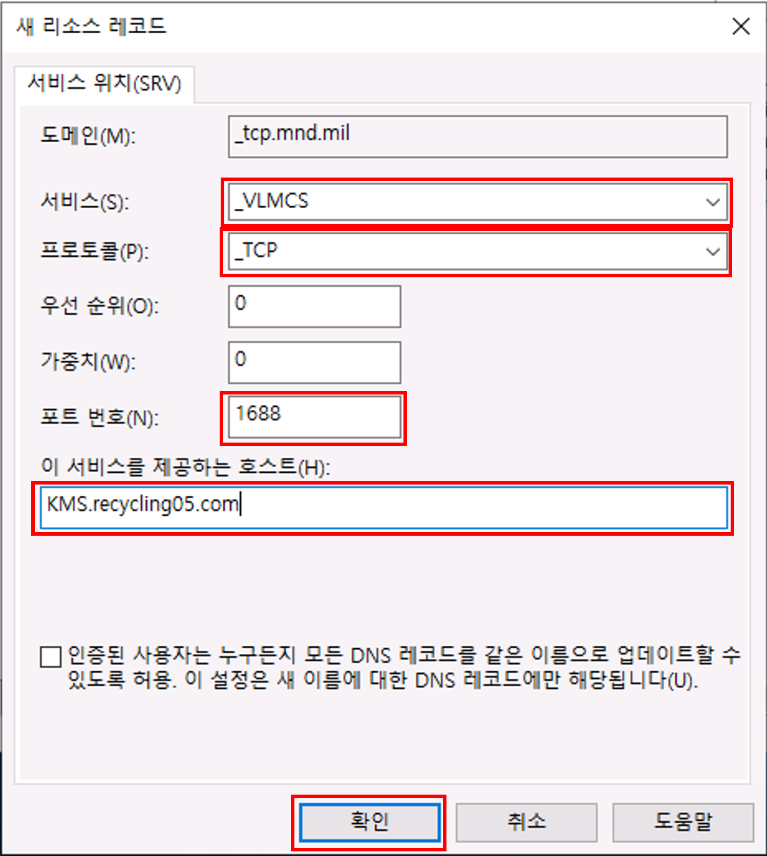ㅁKMS Server 수동으로 SRV 레코드 DNS 등록