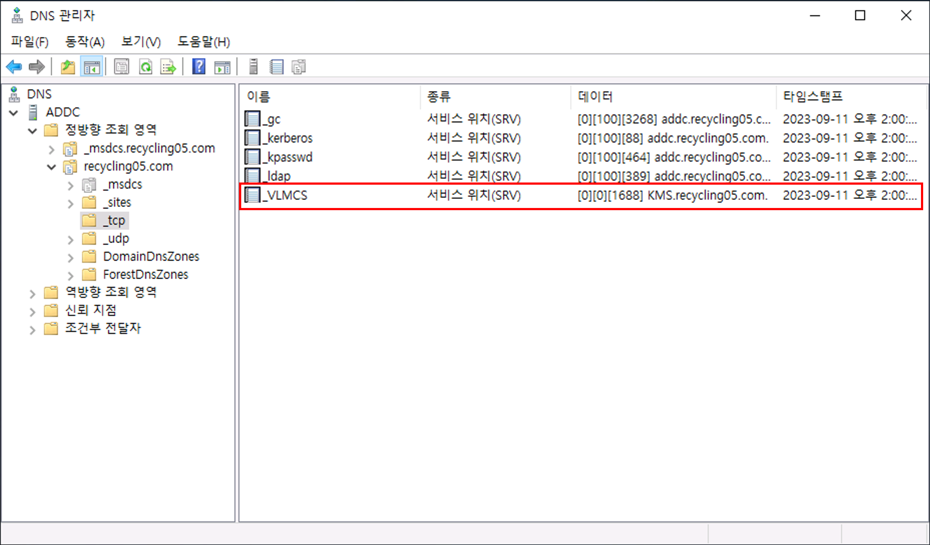 KMS Server가 Active Directory에 도메인 가입이 되면 SRV레코드는 자동으로 생성됩니다.