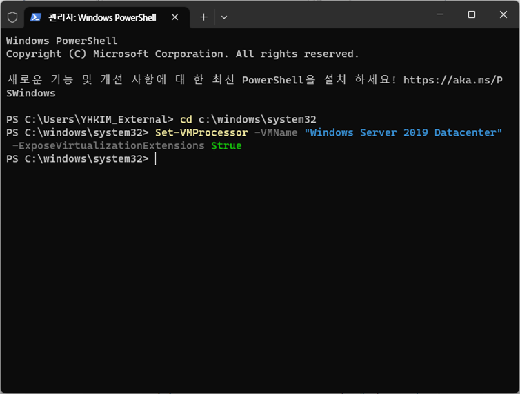 ㅁMicrosoft Hyper-V 중첩된(이중) 가상화 설정 방법