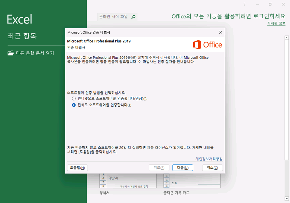 • Microsoft Office 2019/2021 정품 인증 인터넷