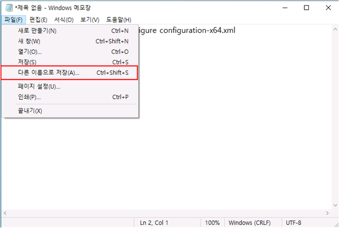다운로드 후 Office 이미지 설치를 위한 XML 파일을 configuration-x64.xml 제작합니다.