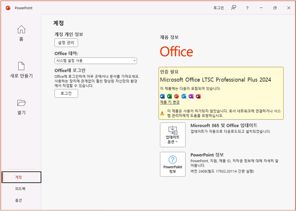 ㅁMicrosoft Office 2019/2021 정품 인증, 설치 이미지, 업데이트