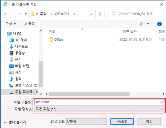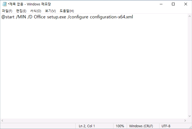 배치파일을 실행하여 Office 설치가 진행 될 수 있도록 실행 배치파일을 제작합니다.