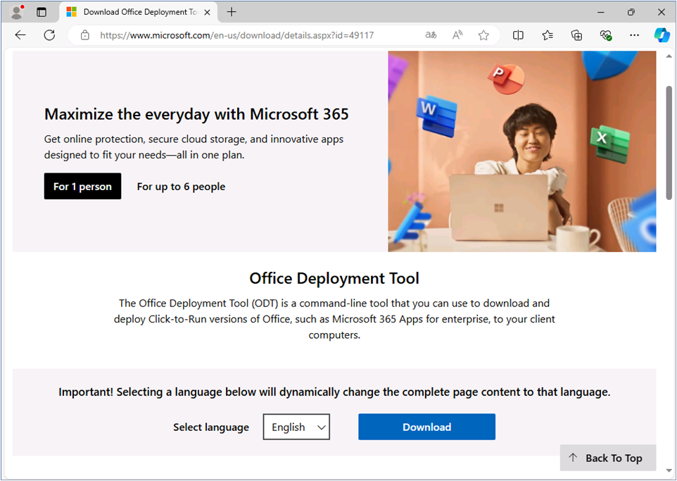 Download Office Deployment Tool from Official Microsoft Download Center