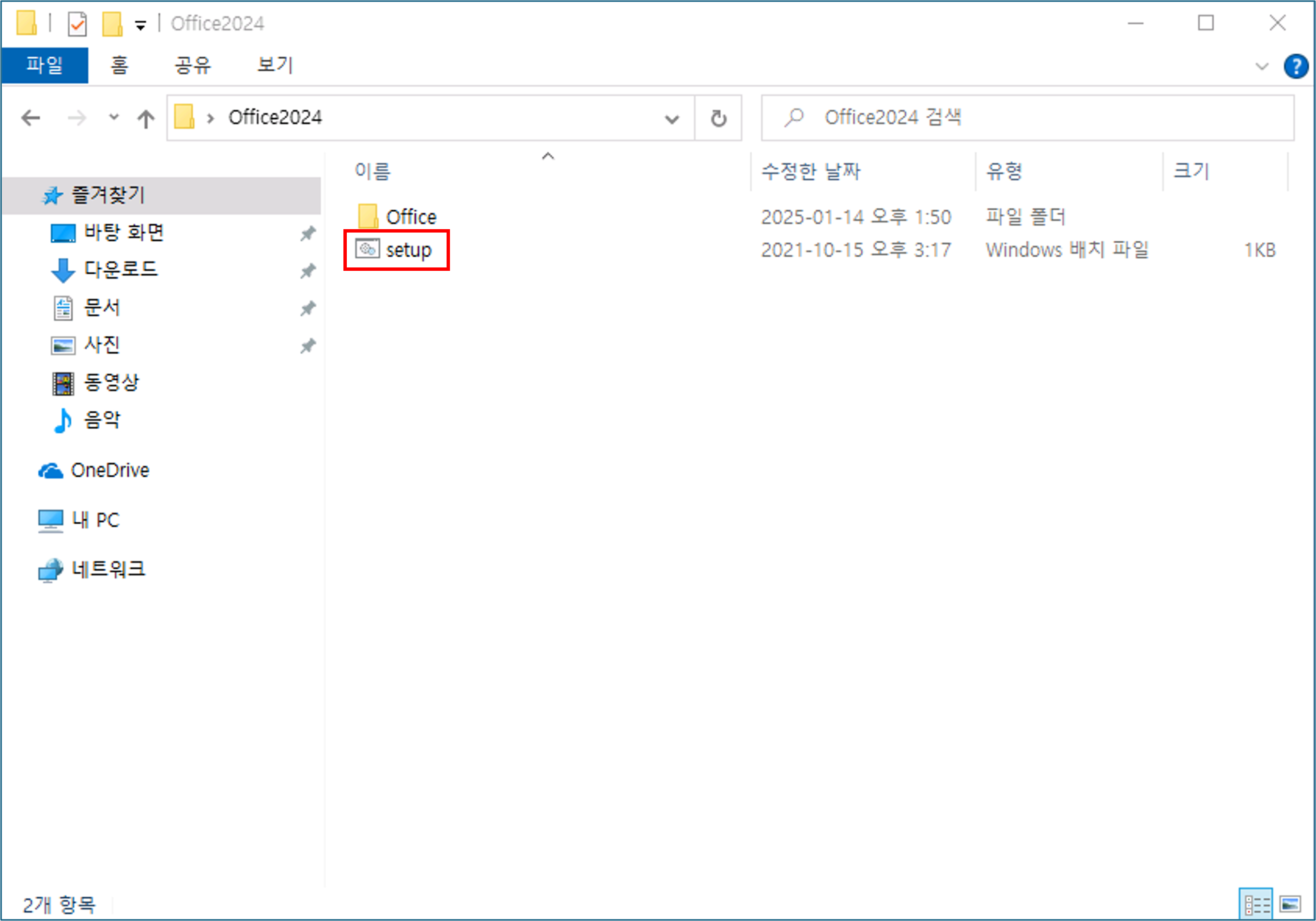 Office2024 폴더에서 [setup.bat] 파일 실행하여