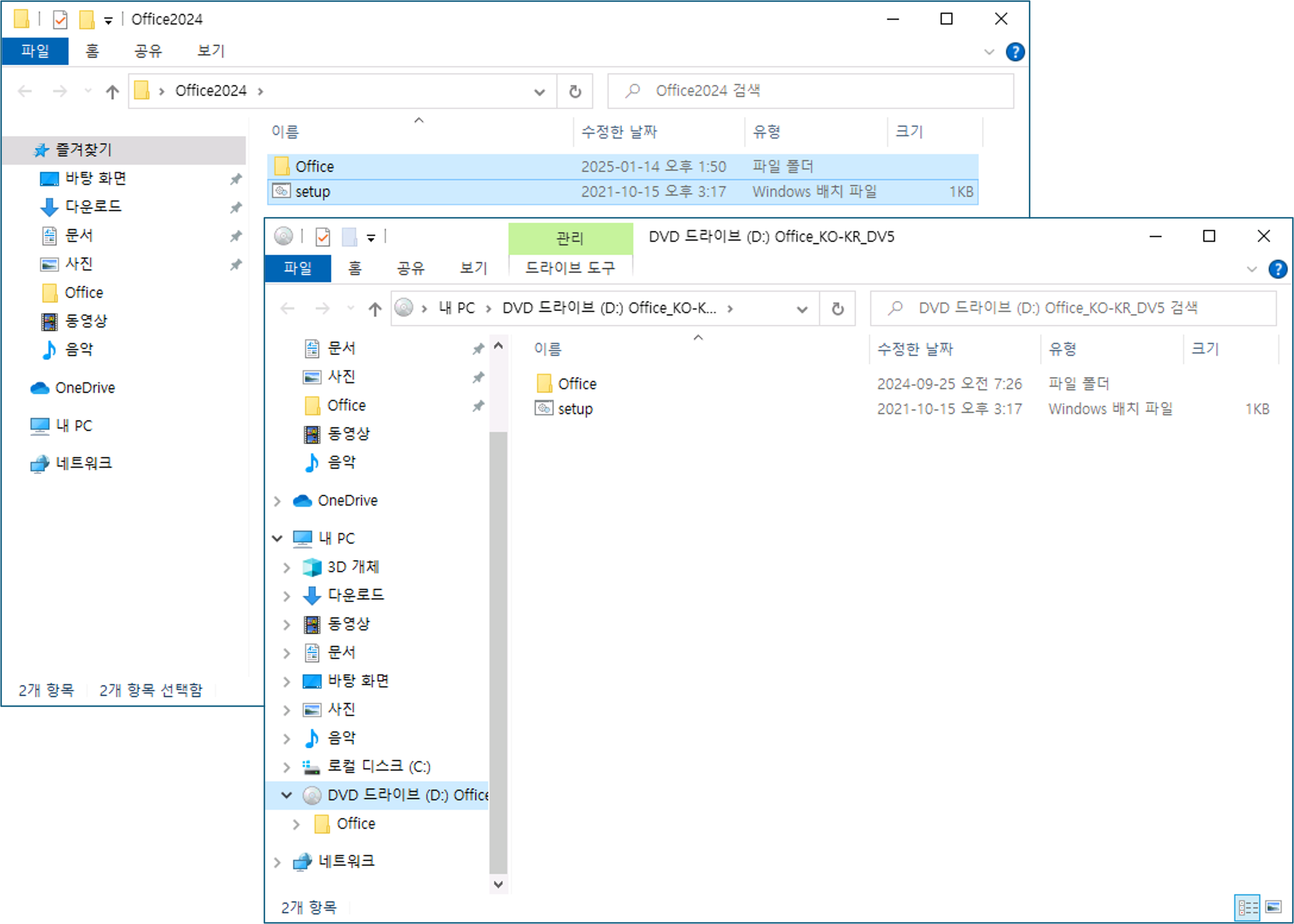 Office2024 폴더를 생성 후 Office2024 설치 DVD에 있는 내용을 모두 복사 진행