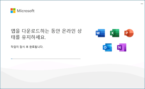 Skype for Business, OneDrive for Business, Access 제거 된 설치 화면을 확인 할 수 있습니다.