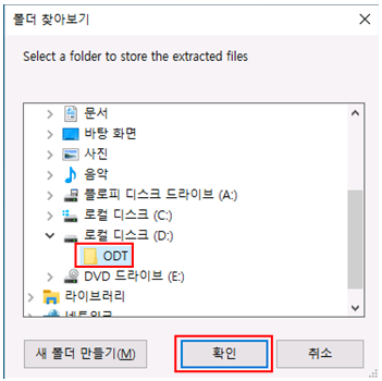 저장할 위치(폴더 생성)를 선택 후 [확인]을 선택합니다.