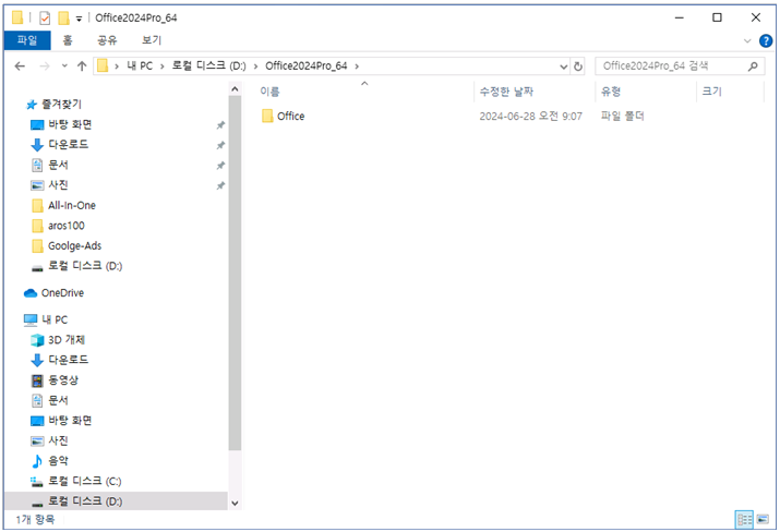 Office 폴더가 생성 되면서 파일이 다운로드 된 것을 확인합니다.