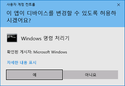 [사용자 계정 컨트롤]에서 "이 앱이 디바이스를 변경할 수 있도록" [예]를 선택합니다.