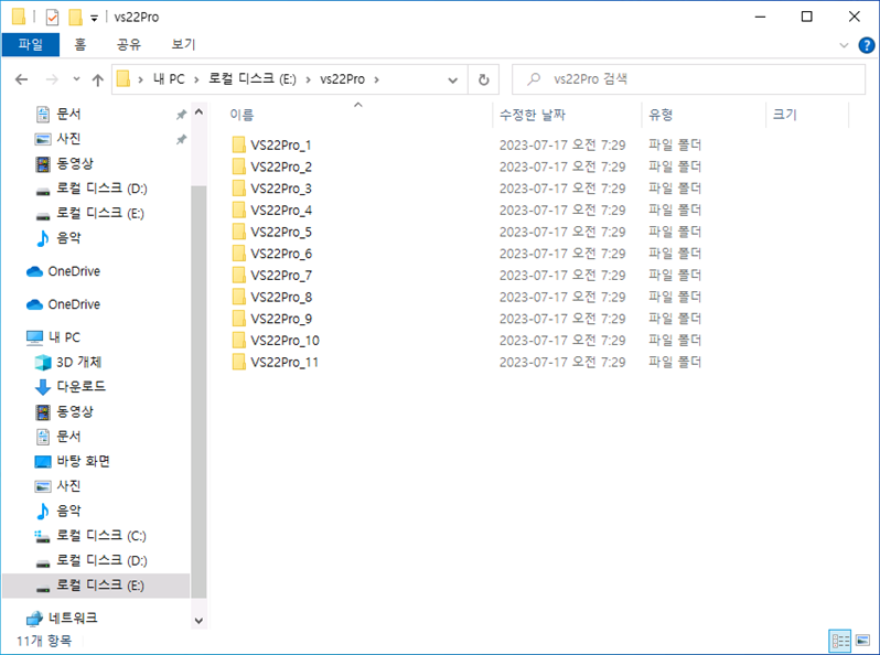 VS22Pro_1 ~ VS22Pro_11 폴더를 생성합니다.