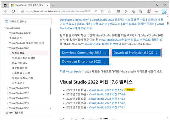2. Visual Studio 2022 설치 파일 다운로드