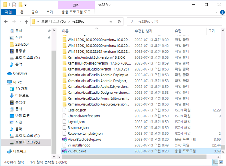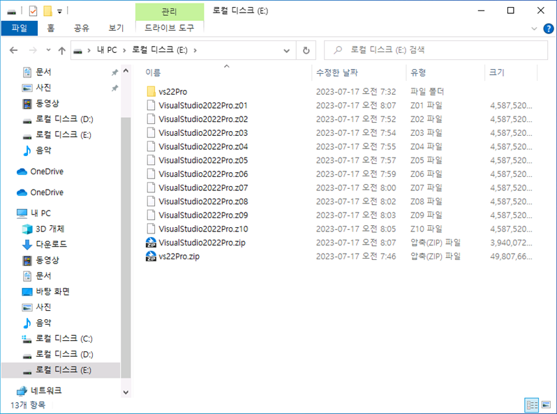 (VS22Pro_1 ~ VS22Pro_11에 VisuslStudio2022Pro.z01 ~ VisualStudio2022Pro.zip까지)
