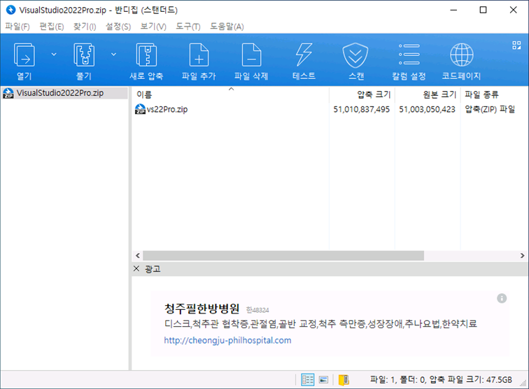 ▷ vs22Pro -> vs22Pro 압축(vs22Pro.zip) -> VisualStudio2022Pro 분할 압축 (VisualStudio2022Pro.z01)