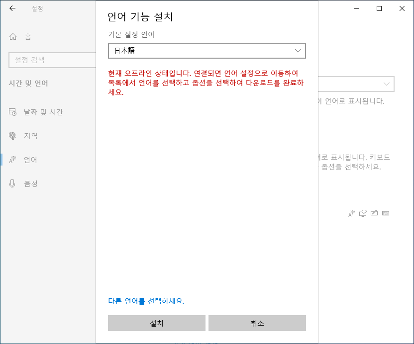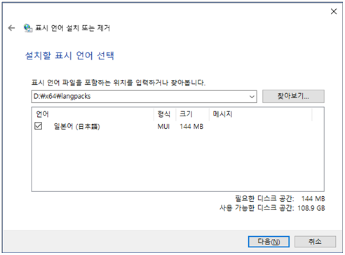 □ Windows 10 오프라인 환경에서 언어팩(일본어) 설치