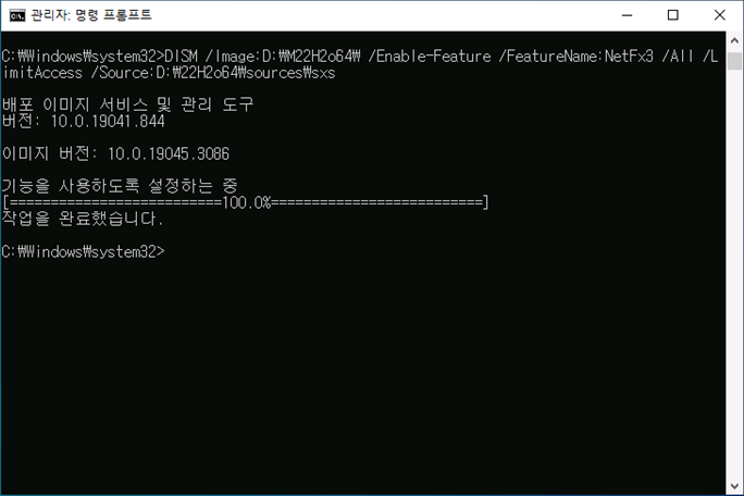 ㅁWindows 10 Enterprise 이미지 분리 및 .NetFramework3.5 적용 방법 안내
