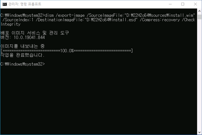 install.wim 파일을 install.esd 파일로 압축 변환합니다.