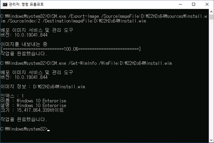 2. Windows 10 Enterprise 이미지 분리(내보내기) 후 확인