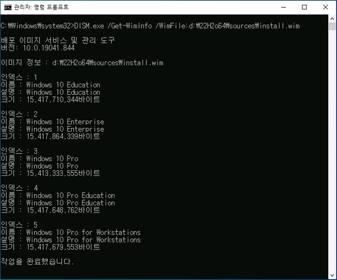이미지 정보 : E:\22H2o64\sources\install.wim