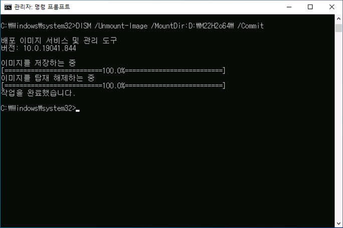 DISM /Unmount-Image /MountDir:D:\M22H2o64\ /Commit