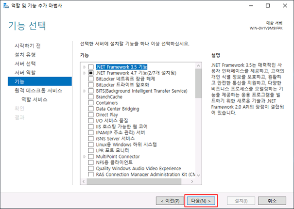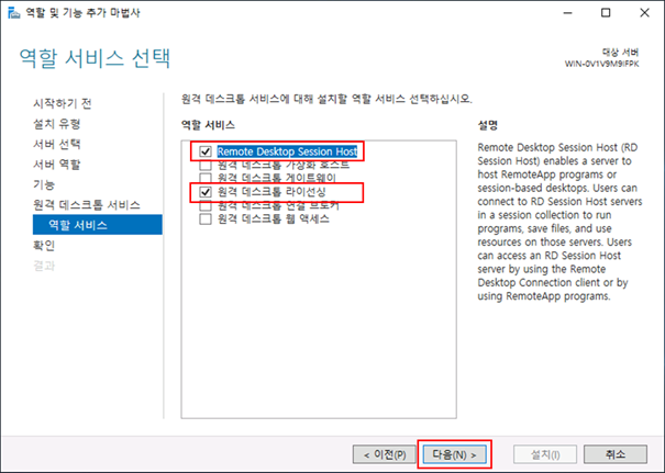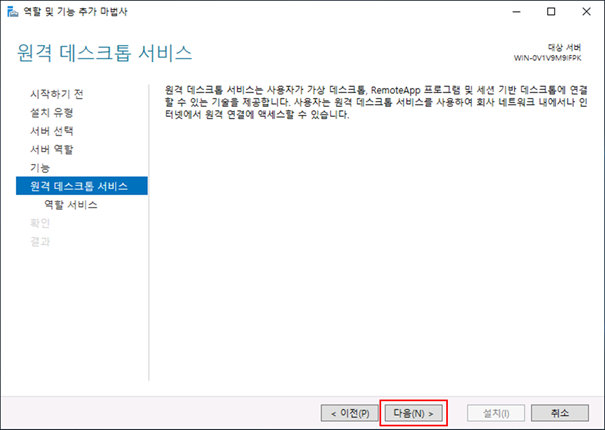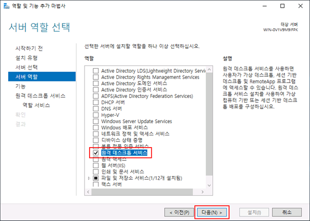 5. [원격 데스크톱 서비스] 선택 후 [다음] 클릭