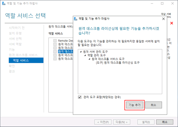 8. [원격 데스크톱 라이선싱] 선택 후 [기능 추가] 클릭