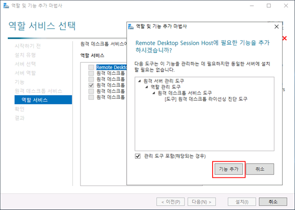9. [Remote Desktop Session Host] 선택 후 [기능 추가] 클릭