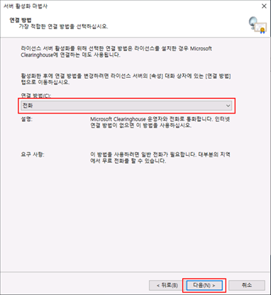 5. 연결 방법에서 [전화]를 선택 후 [다음] 클릭