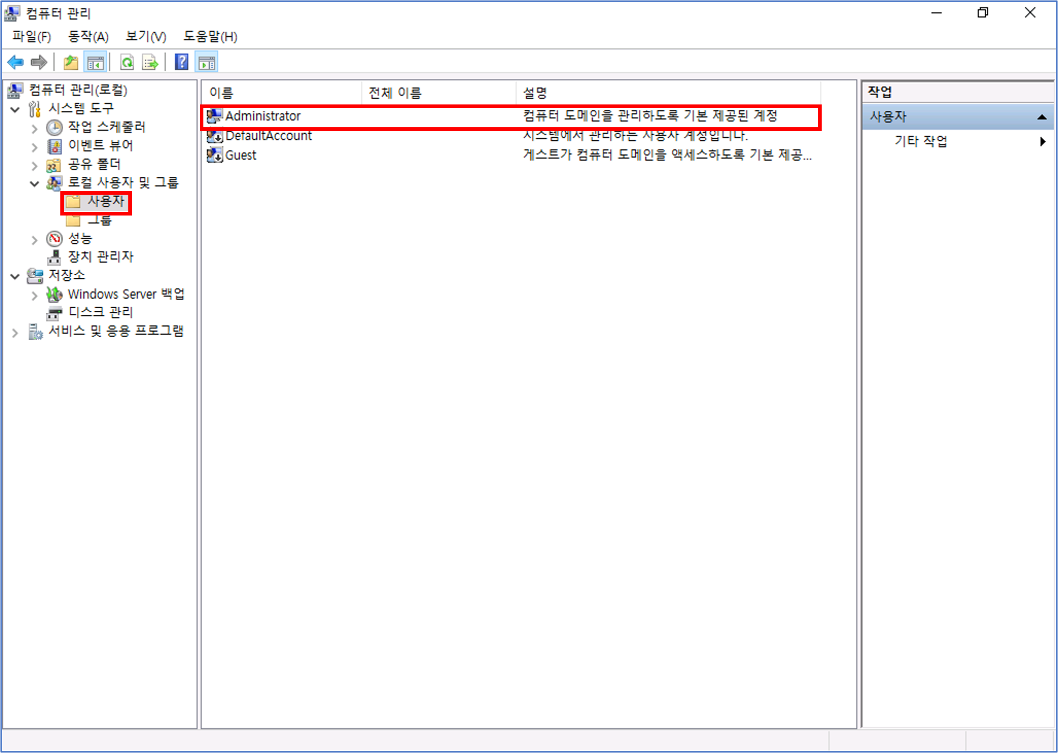 ㅁWindows Server 취약점 분석, 평가 항목 (W-03) 불필요한 계정 제거