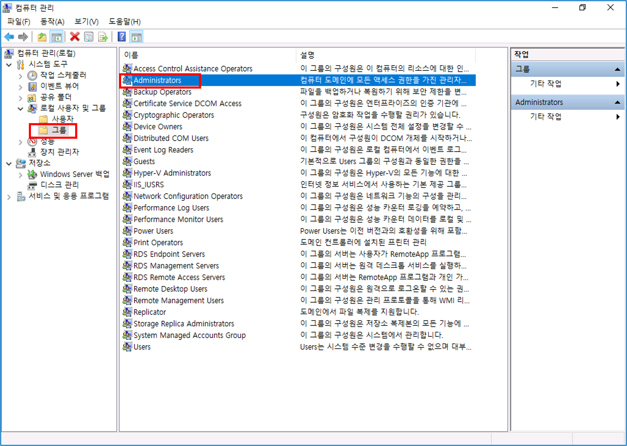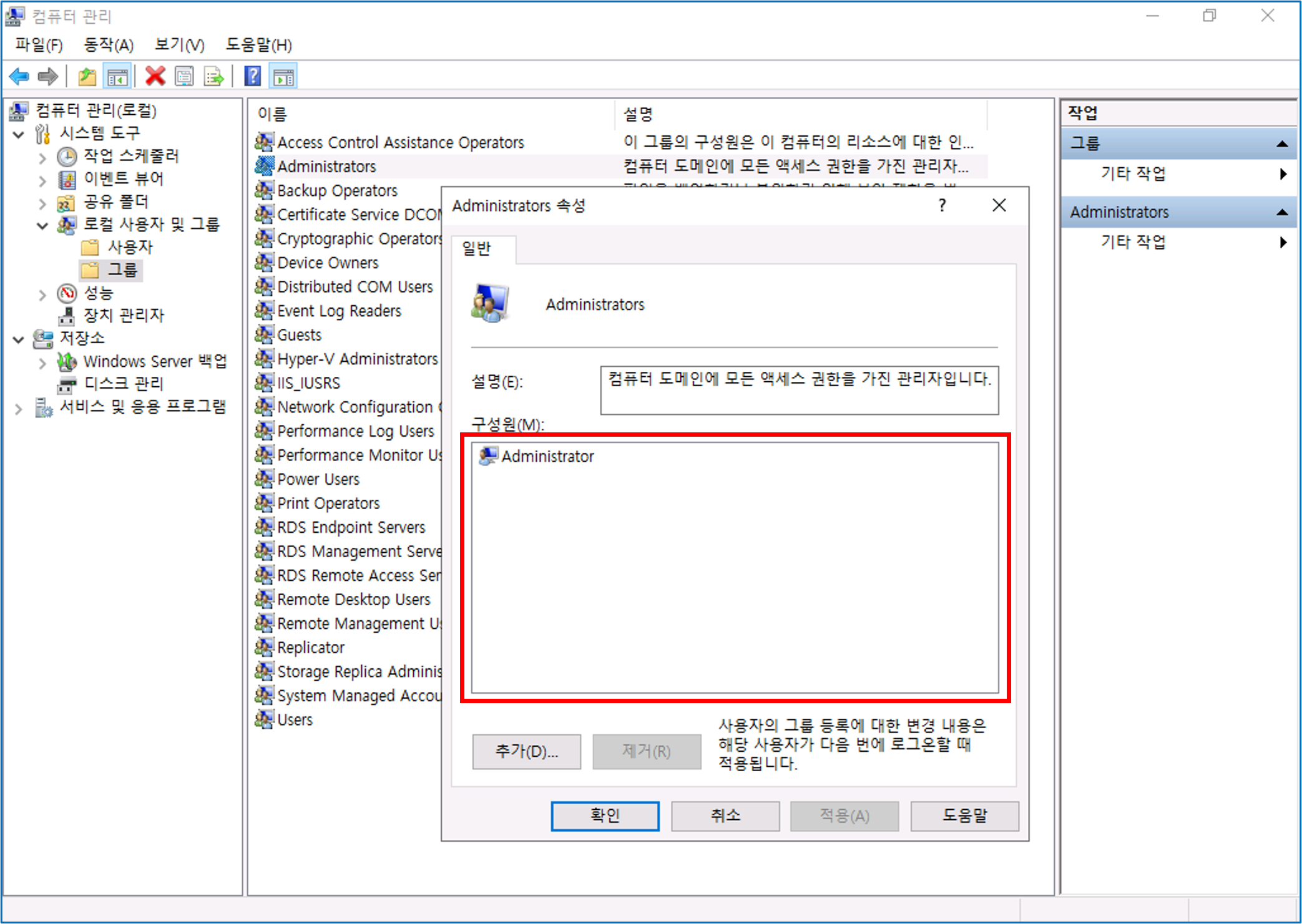 ㅁWindows Server 취약점 분석, 평가 항목 (W-06) 관리자 그룹에 최소한의 사용자 포함
