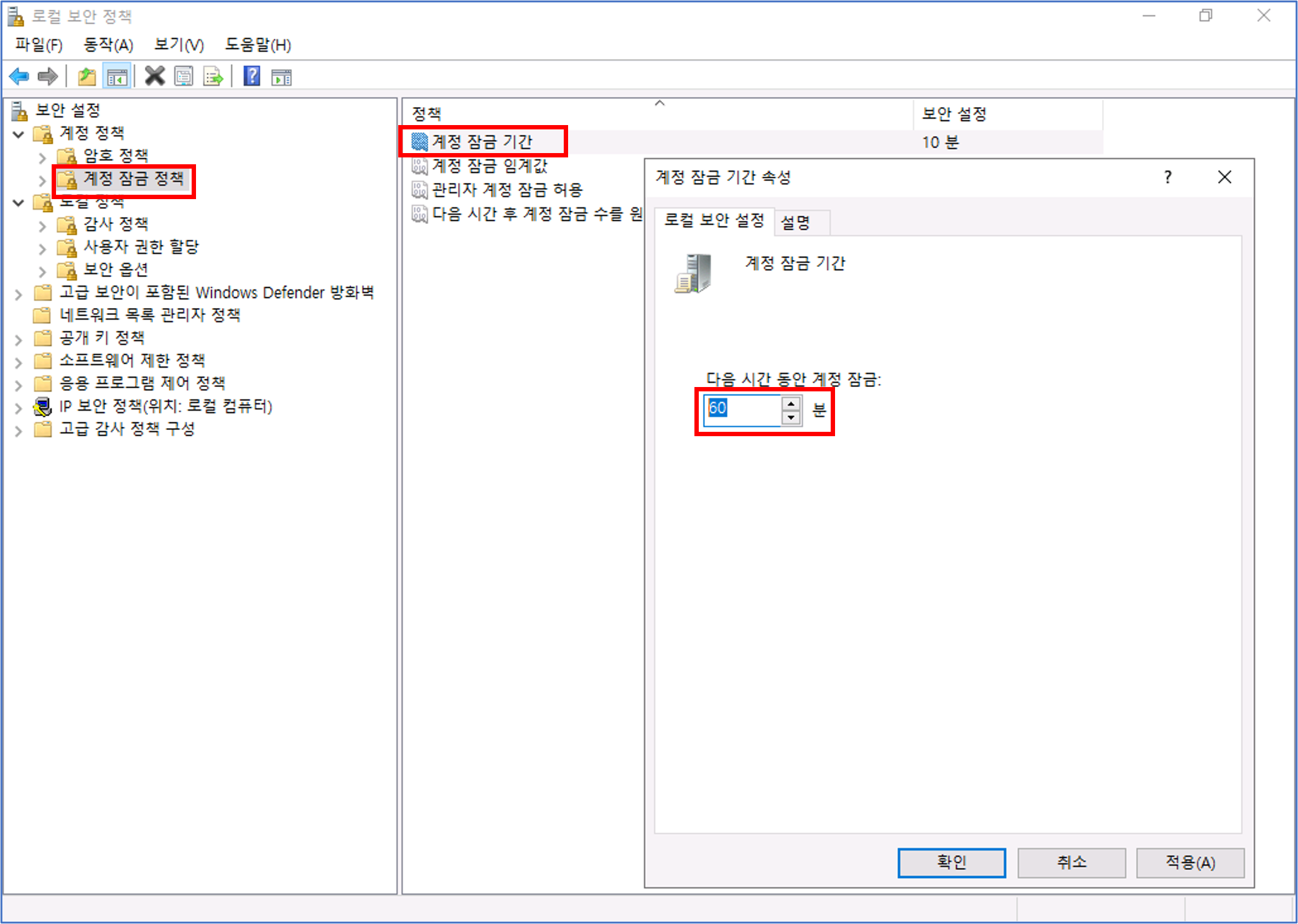 계정 잠금 기간 설정