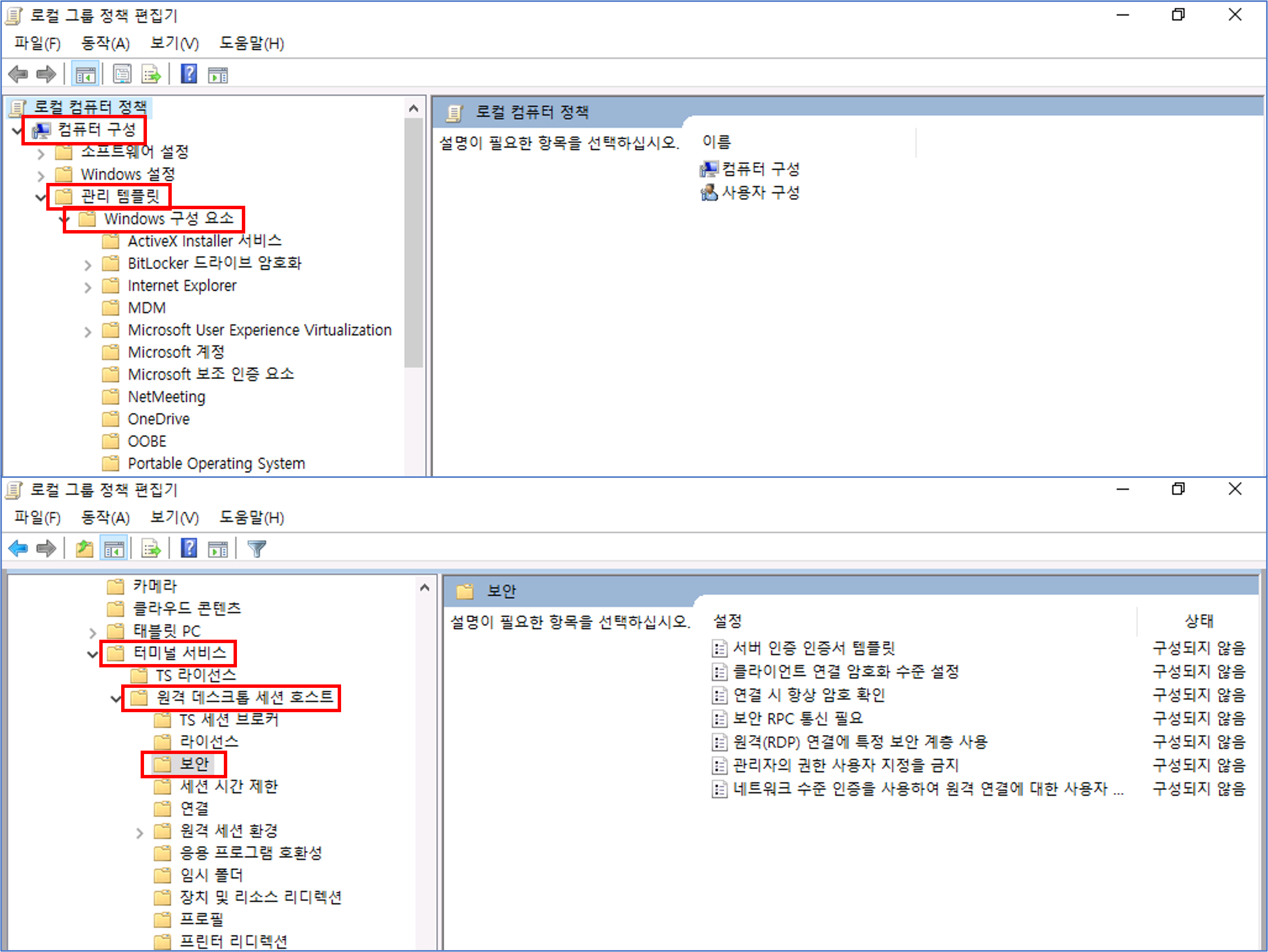 ㅁWindows Server 취약점 분석, 평가 항목 (W-58) 터미널 서비스 암호화 수준 설정