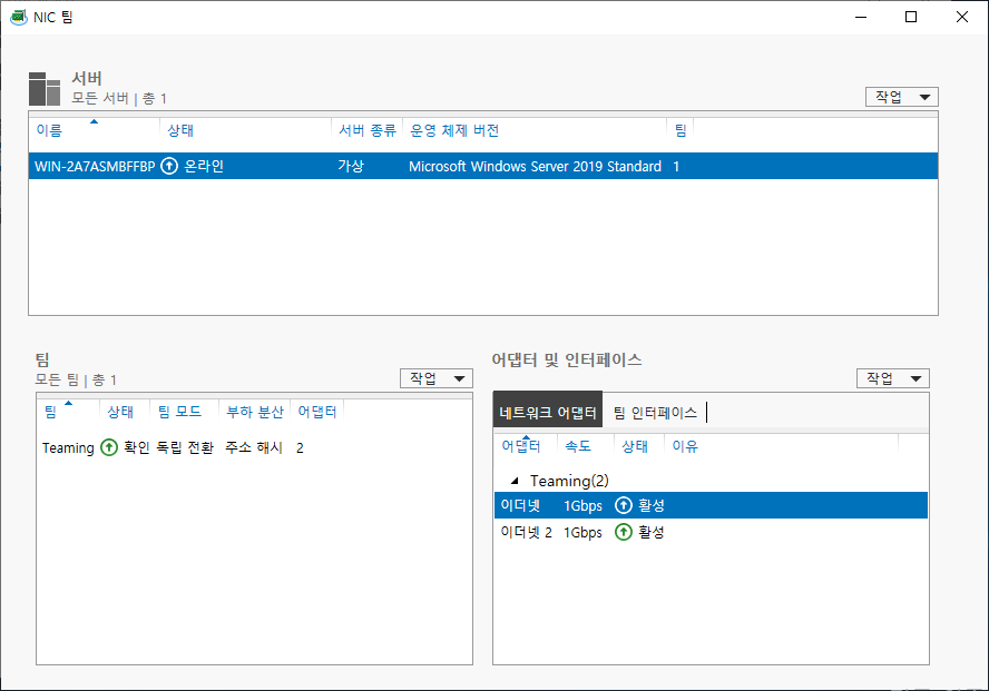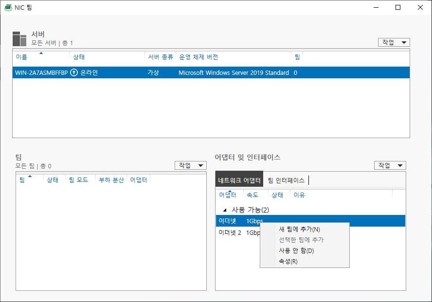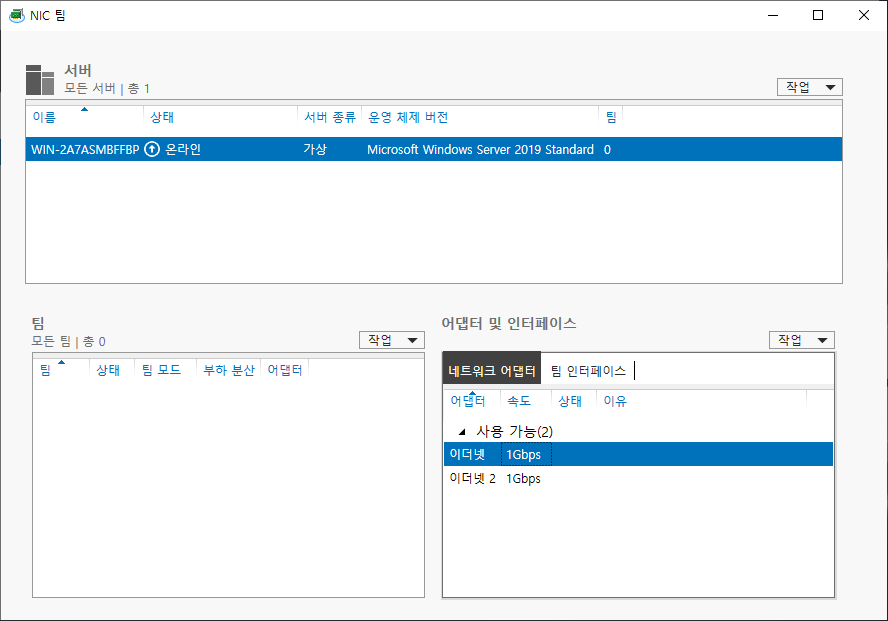 1. Windows Server 2019 티밍(Teaming) 설정