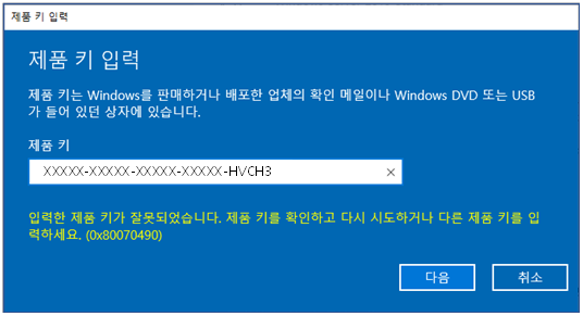 또한 무슨 이유에서 인지는 모르겠으나 올바른 제품키를 입력 하였어도 제품 키가 잘못되었다고 나오면서 제품키 오류가 발생합니다.