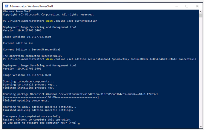 dism /online /set-edition:serverstandard /productkey:N69G4-B89J2-4G8F4-WWYCC-J464C /accepteula