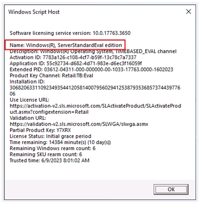 ※ Evaluation -> Standard, Datacenter (O) / Standard -> Datacenter (O) / Datacenter -> Standard (X)