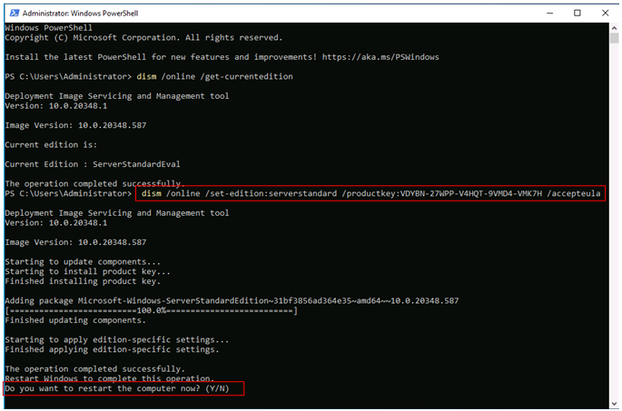 - dism /online /set-edition:serverstandard /productkey:VDYBN-27WPP-V4HQT-9VMD4-VMK7H /accepteula