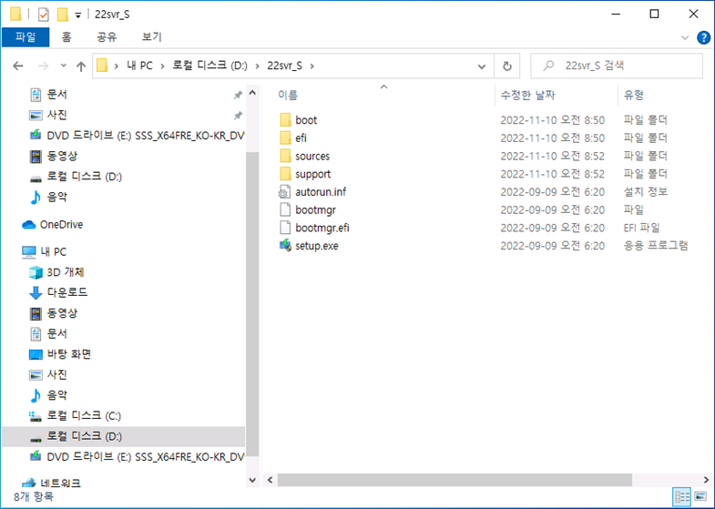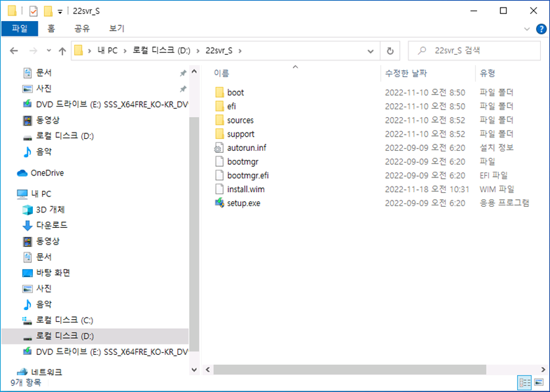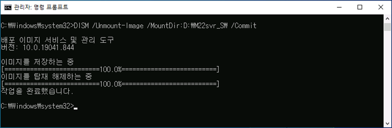 해당 폴더에 22svr_S\sources\install.wim 이미지 파일을 마운트 합니다.