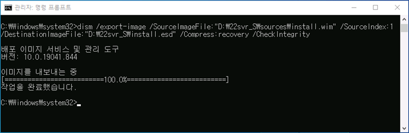 dism /export-image /SourceImageFile:"D:\22svr_S\sources\install.wim" /SourceIndex:1 /DestinationImageFile:"D:\22svr_S\install.esd" /Compress:recovery /CheckIntegrity