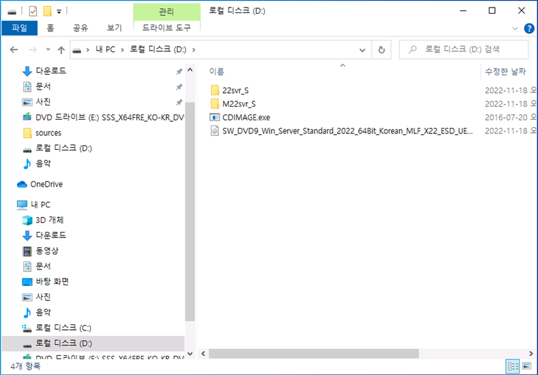 다운로드 한 Windows Server 2022 Standard ISO 파일을 마운트 합니다.