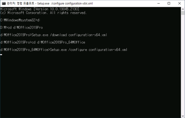 setup.exe, configuration-x64.xml 파일이 위치한 폴더로 이동합니다.