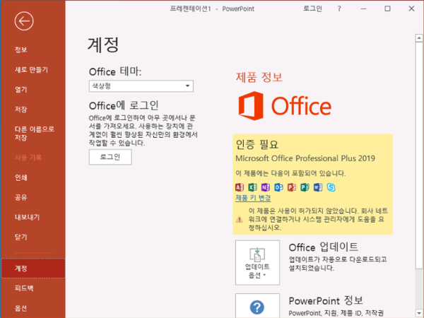 Microsoft Office Professional Plus 2019가 설치된 화면을 확인 할 수 있습니다.
